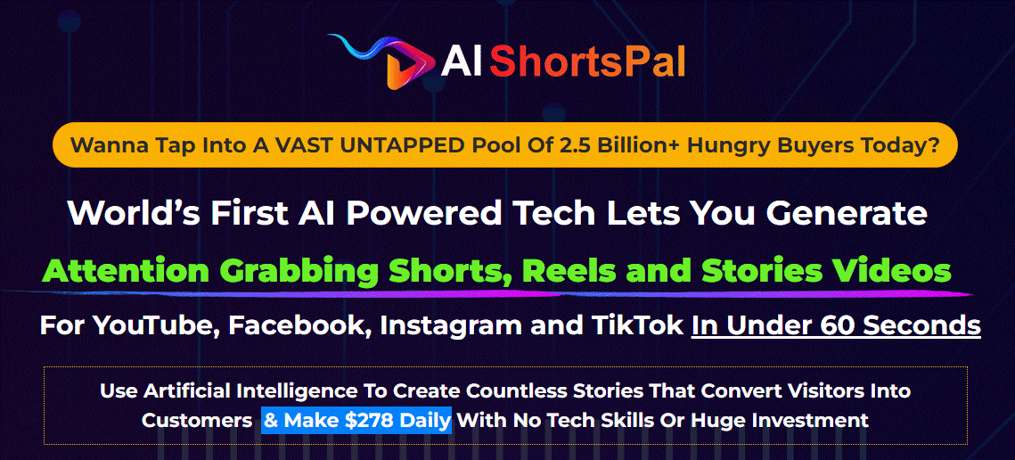 Get AI Shorts Pal With OTO1 (Premium), OTO2 (Unlimited) and OTO3 (Templates):